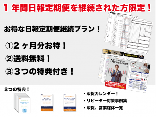 1年間日報定期便をご利用いただいた方には特別な継続キャンペーンを実施中!